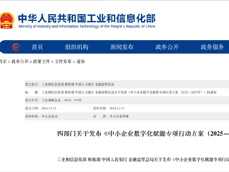 12月13日,工信部、财政部、中国人民银行、金融监管总局联合发布《中小企业数字化赋能专项行动方案(2025—2027年)》,推动中小企业数字化转型。 ...