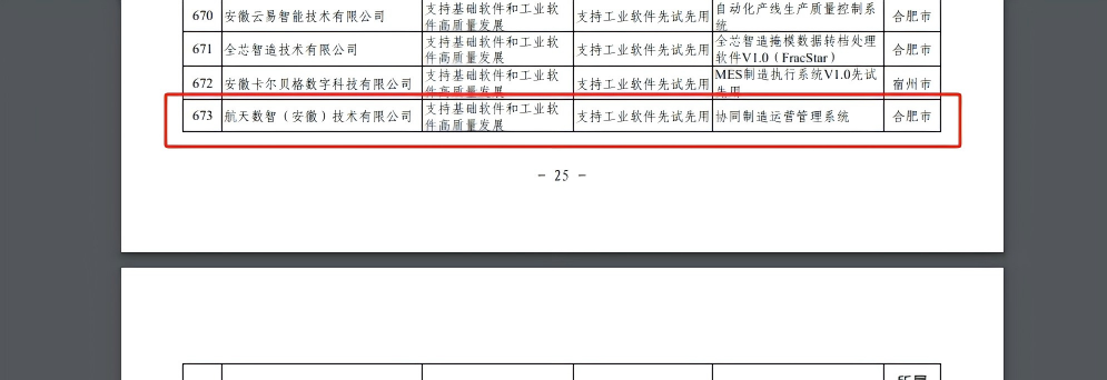 6月18日,安徽省工信厅公布2025年“支持基础软件和工业软件高质量发展”政策相关的企业及产品名单,航天数智(安徽)技术有限公司研发的协同制造运营管理系统成功入榜。