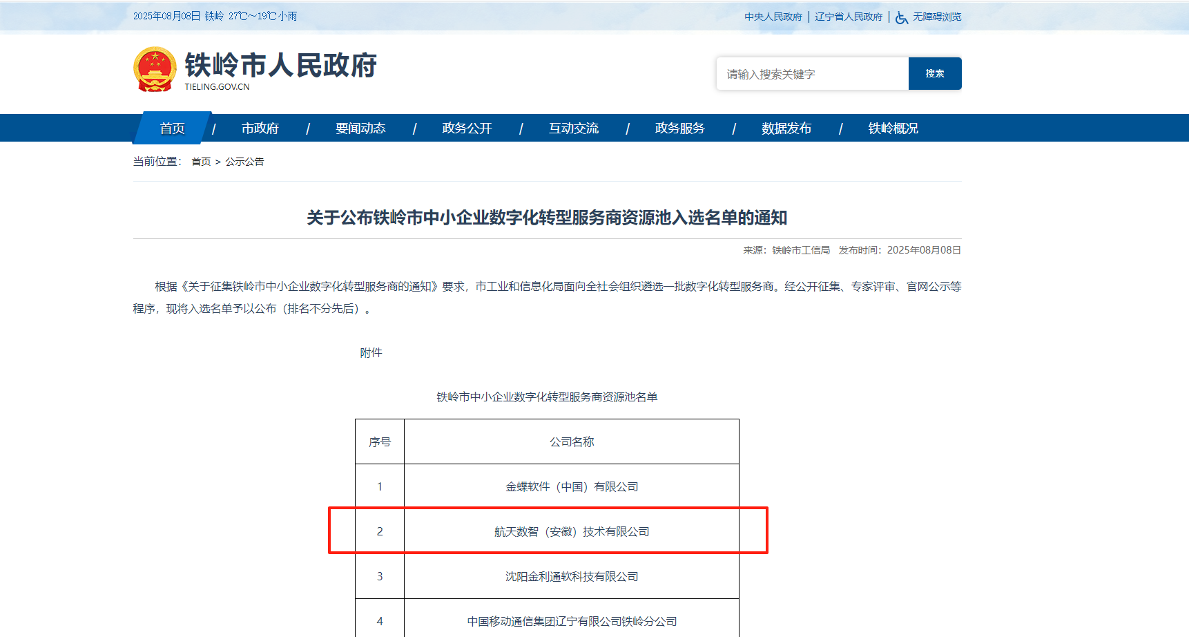 近日,铁岭市中小企业数字化转型服务商资源池更新名单公布,航天数智成功入选特色装备制造业行业型服务商。未来,航天数智将依托资源池平台,持续深化与铁岭市中小企业的合作,不断探索制造业企业数字化转型新路径,为推动铁岭市中小企业高质量发展贡献力量。
