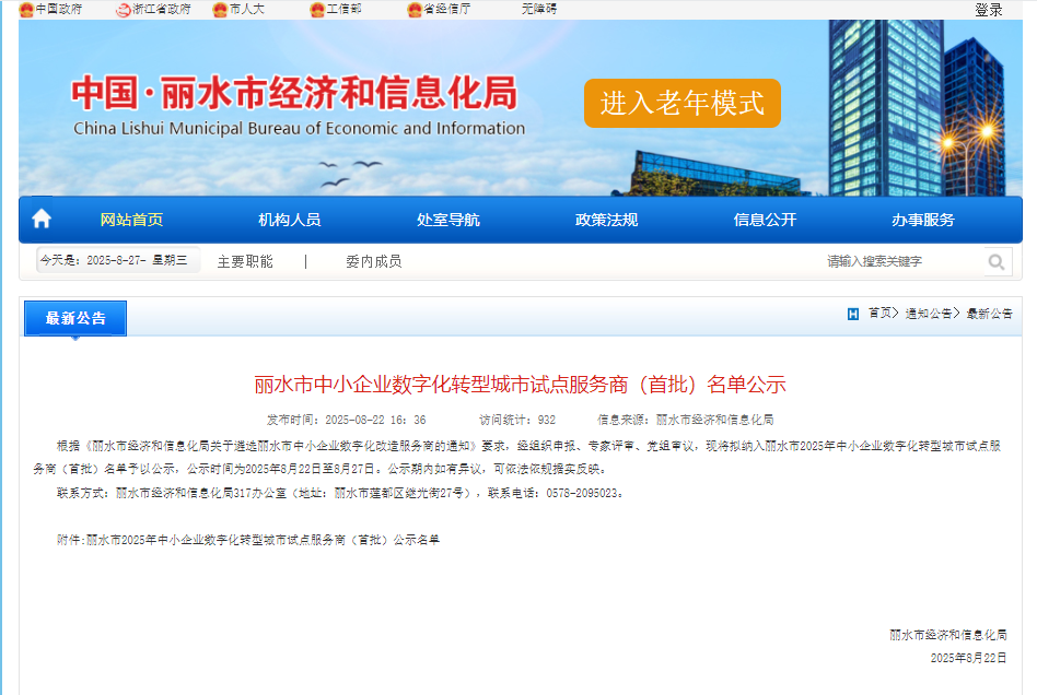 航天数智近期接连入选上海浦东新区和浙江丽水市的数字化转型服务商名单。