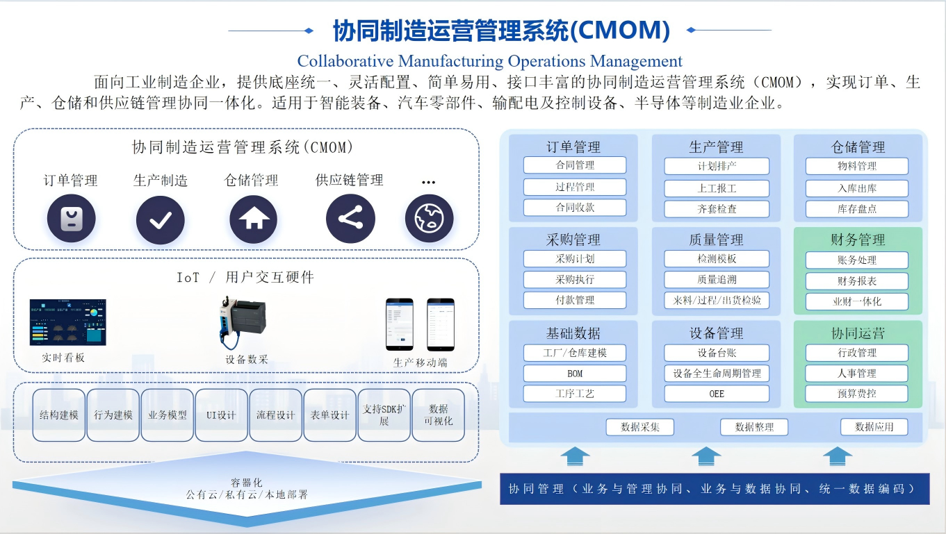CMOM 1.2 是一次全面性、系统化的升级,不仅新增多个业务模块(如能耗、售后、决策支持),还在原有功能基础上进行了深度优化,特别是在用户体验、流程规范、系统性能和数据可视化方面有显著提升。同时,移动端功能进一步增强,支持无纸化、实时报工和工资查询,贴合制造业现场使用场景。