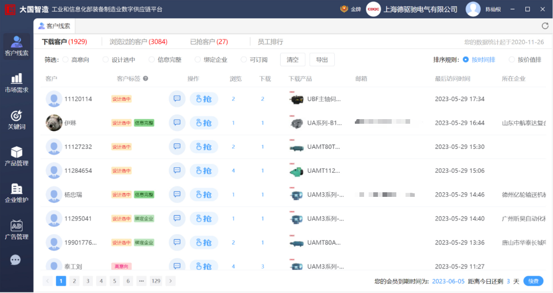 利用“大国智造”客户端,为供应商提供精准 BtoB 销售线索,与潜在客户直接对接,由被动等待信息转变为实时主动营销,及时掌握客户需求,及时推送线下跟踪。
