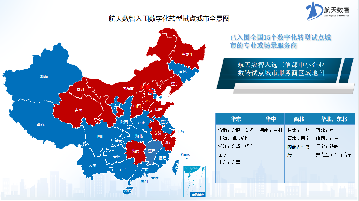 截止目前,航天数智已入围全国15个数字化转型试点城市的专业或场景服务商。